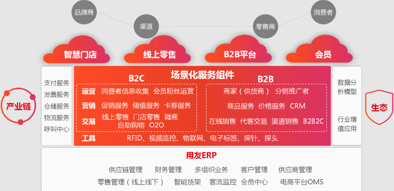 全新U8+數(shù)字營(yíng)銷(xiāo)平臺(tái)將線(xiàn)上與線(xiàn)下業(yè)務(wù)融為一體,為企業(yè)建立前中后臺(tái)一體化的數(shù)字營(yíng)銷(xiāo)平臺(tái)。為客戶(hù)和消費(fèi)者提供友好的購(gòu)物體驗(yàn)、靈活的前臺(tái)服務(wù),用強(qiáng)大的營(yíng)銷(xiāo)中臺(tái)支撐前端業(yè)務(wù)快速創(chuàng)新、實(shí)現(xiàn)全渠道營(yíng)銷(xiāo)資源共享、多樣的場(chǎng)景化服務(wù)業(yè)務(wù),同時(shí)提供后臺(tái)業(yè)務(wù)財(cái)務(wù)一體化管理。
