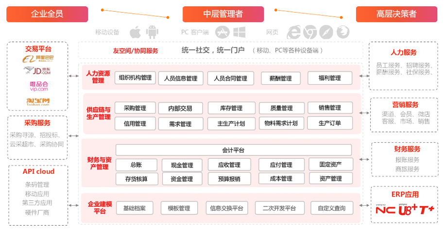 U8 cloud是用友推出的新一代云ERP,主要聚焦成長型、創(chuàng)新型企業(yè),提供企業(yè)級云ERP整體解決方案,全面支持多組織業(yè)務協(xié)同、營銷創(chuàng)新、智能財務、人力服務,構(gòu)建產(chǎn)業(yè)鏈制造平臺,融合用友云服務,實現(xiàn)企業(yè)互聯(lián)網(wǎng)資源連接、共享、協(xié)同,賦能中國成長型企業(yè)高速發(fā)展、云化創(chuàng)新